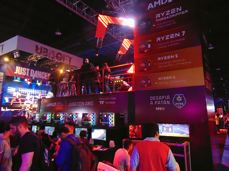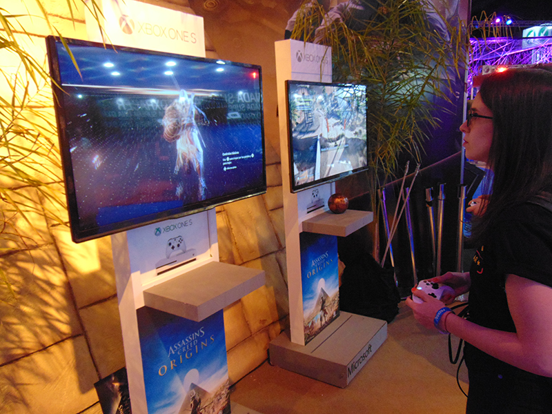 Ubisoft también fue otra de las grandes empresas del gaming que marcó presencia con un gran escenario para jugar Just Dance (donde también se jugaban las eliminatorias para la copa mundial) y un área especial ambientada donde se podía probar Assasins Creed Origins.