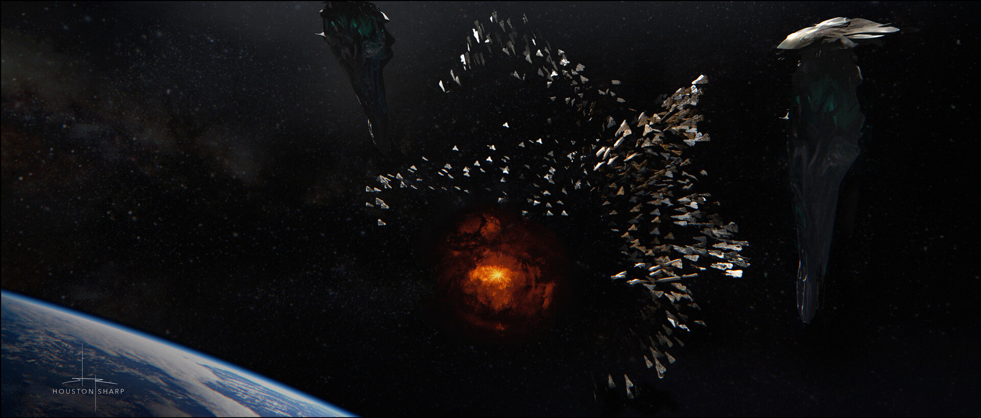Ahora, el artista Houston Sharp, revelo algunos artes conceptuales de lo que hubiera sido esta batalla final en el espacio, y sin duda luce mucho mas épico de lo que fue el final que vimos todos, pero, las similitudes con Captain Marvel son evidentes…