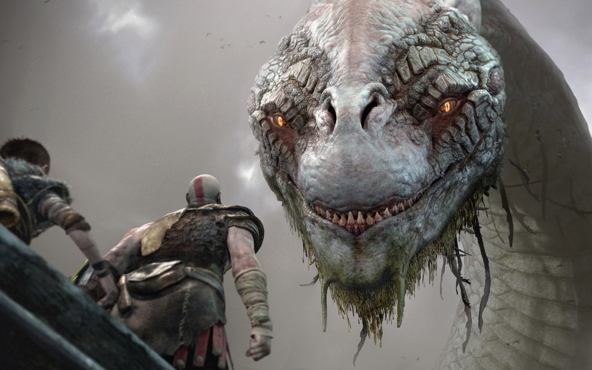 Atrás quedo la batalla con los Dioses del Olimpo y la muerte de Zeus. Después de haber logrado su venganza, y por los visto, haber encontrado la paz, la historia nos presenta a un Kratos bastante entrado en edad, más viejo y más humano, en tierras lejanas, llevando una vida más tranquila. Además, ahora es padre de Atreus, con quien emprenderá un viaje por un camino desconocido, lleno de amenazas y peligros, con el fin de esparcir las cenizas de su recientemente difunta esposa en lo alto de la montaña (si, arranca bajón de una, con tragedia como no podía ser de otra manera). Pero lo particular y quizás más interesante de la historia es que Kratos no comienza un viaje “clásico en busca de venganza”, sino que esta vez es impulsado por un sentimiento más noble, más humano y mucho más personal. De seguro esto no será del agrado de muchos, pero muestra una faceta nueva de la personalidad del “Dios de la guerra”, tratando de educar y guiar a su inexperto hijo, intentando ser un buen modelo para él. La relación entre padre e hijo es extraña por momentos, y nos trae a un Kratos duro a la hora de mostrar sentimientos y un Atreus que entiende la rudeza de su padre y que le merece su respeto. Todo este conflicto entre padre e hijo está tan bien logrado que por momentos hasta se siente tangible. Se siente profundo y sensible, aún tratándose de un videojuego.