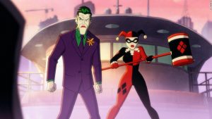el primer episodio de la serie comienza con Harley Quinn atormentando a unos millonarios en un yate, aquí a pesar de recibir burlas por ser la novia del Joker, con tan solo un golpe de su mazo demuestra que es mucho más que eso, al romperle la pierna a uni de estos ricos arrogantes. A la sorpresa, El Joker hace una aparición, de una forma poco convencional… al final, la misión no sale como esperaban y Harley termina encerrada en Arkham, en donde aguarda a ser rescatada por su “pudín”