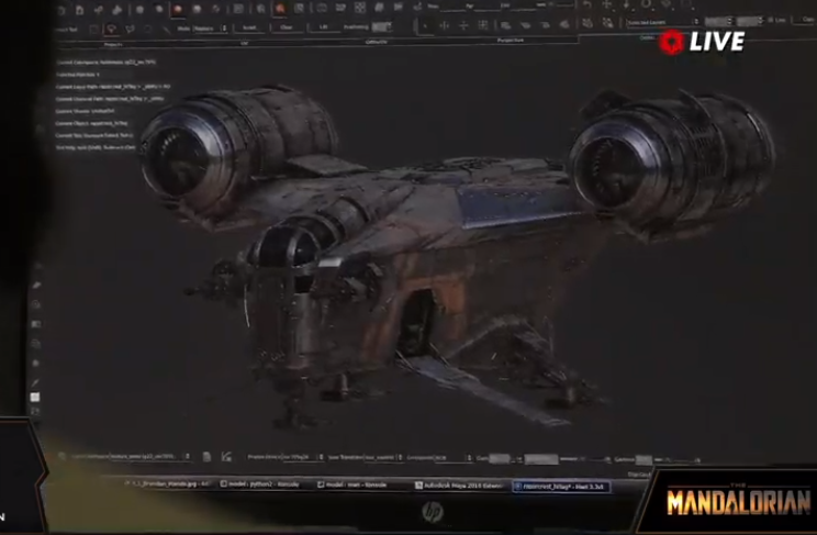Tenemos algunas tomas de la Razor Crest, la nave del Mandalorian, algo interesante acerca de esta nave, es que al igual que las naves en la trilogía original, esta fue construida en un molde, y no echa con CGI por computadora.