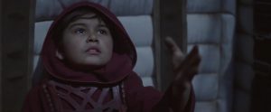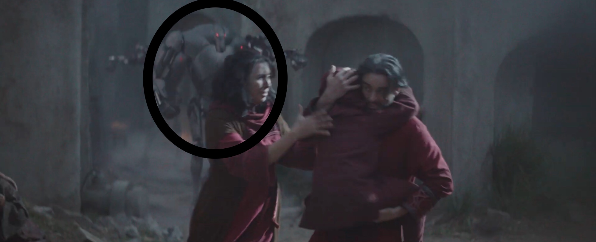 Como verán en la primera vemos a un niño, quien parece estar dándole la mano a alguien, y en la segunda se ve una nave pasando a gran velocidad, esta nave no es cualquiera, es una Gunship Droide de los separatistas, de la época de las Guerras Clonicas, este tipo de naves fueron vistas en Star Wars: The Revenge Of The Sith¨ (2005) en el ataque de droides a Kashyyk (hogar de los Wookies)